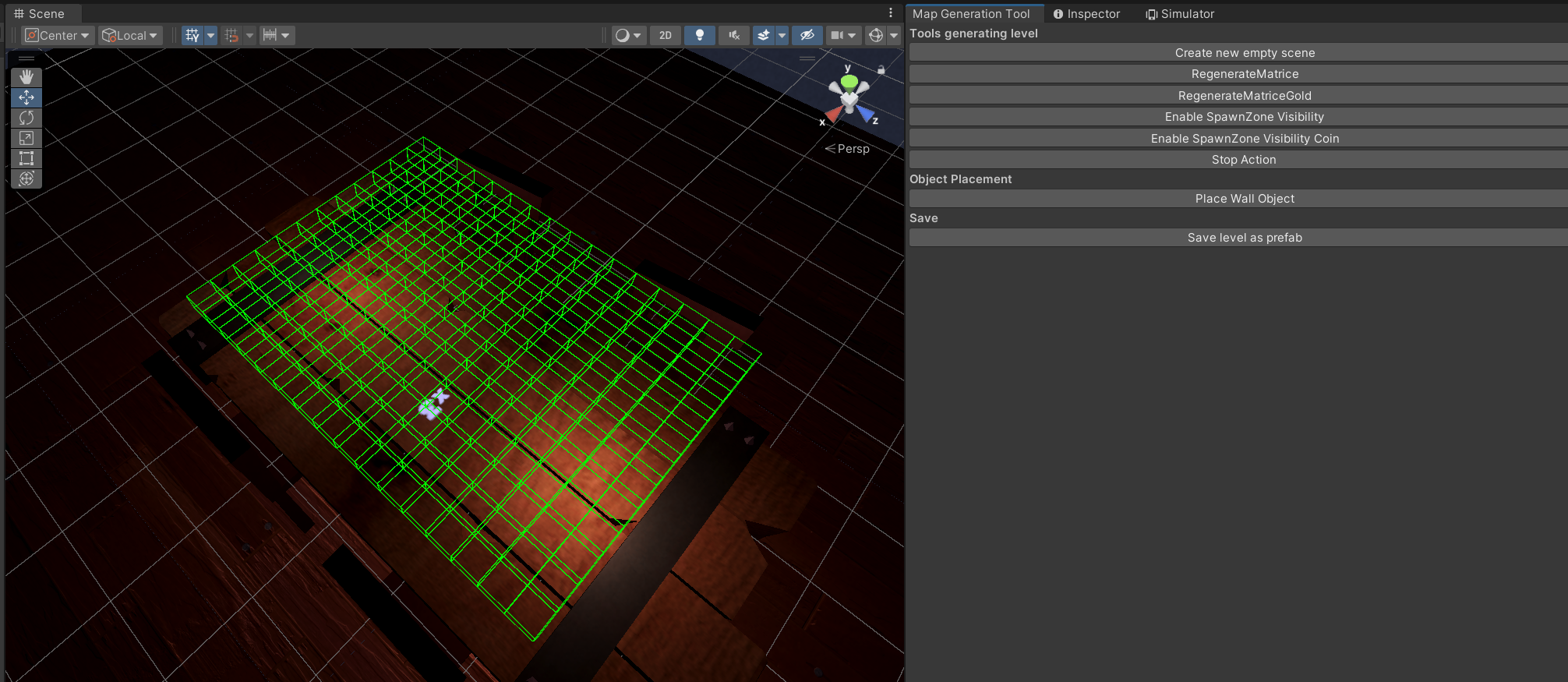 When it came to random enemy placement, I encountered an issue right away: I couldn't generate the level from scratch because we wanted to keep control over the available level designs (the walls placed on the terrain).